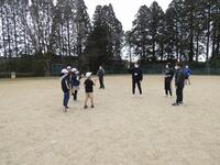 その後、秋山小児童7名と大学生3名の計10名で、バスケットボール型のゲームを行いました。