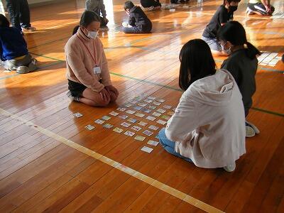 5年生(2人)は、2校時に総合「くしま学カルタ」、3校時に外国語「パフォーマンステストに向けて」の学習をしました。