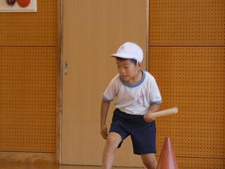 体育館で行う場合は、徒競走ができないので代わりに一輪車障害走(3年生以上)を行います。