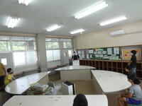 避難後は、ランチルームに移動し、校長がまとめをしました。