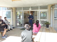 避難をした後に、玄関前で校長の話と消防本部の方の話を聞きました。