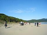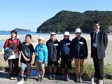 幸島前に集合してから、三校合同のグループに分かれ、石波海岸や市木橋、三戸先生の家などを歩いてまわりました。それぞれのポイントには、市木小学校の1~4年生がいて、