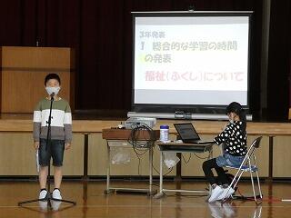 最初に発表した5年生は、総合的な学習の時間と国語の発表をしました。