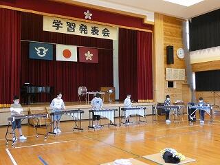 市の音楽会で発表した「カイト」と音楽会後に練習した「クシスコポスト」の合奏を披露してくれました。