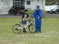 はじめに交差点での巻き込み事故について、ダミー人形による実験を通してご指導いただきました。