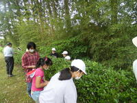 摘む葉についての説明があった後、早速、全校児童、全職員で茶摘みをしました。