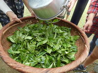 摘んだ茶葉は、元PTA会長の野辺さんにお願いして、製茶してもらいます。