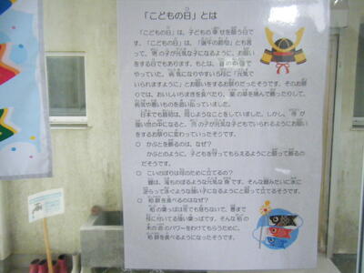 今回も「こどもの日」とはどんな行事なのかの説明も掲示しています。