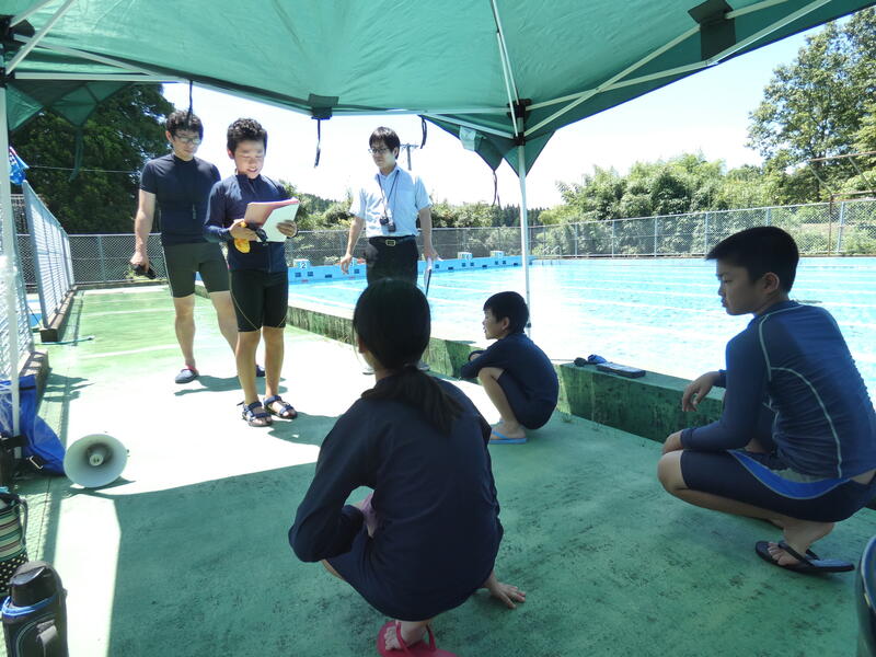 話の後は、安全な入水の仕方について教えていただき、実際にやってみました。