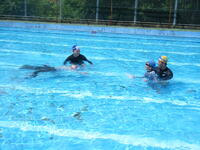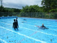 入水後は、プールを1周歩いて回り、服を着ている時には、歩きづらい(水の抵抗が強い)ことを体験しました。