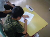 はじめの会をしたあと、まずは、学習会ということで、夏休みの課題に取り組みました。