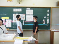 学習会の後は中学生に中学校の様子を教えてもらいました。