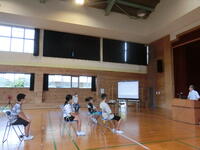 1年間がんばってほしいこと(「コミュニケーション」「命を大切にする」「チャレンジ」)を夏休みも引き続きがんばるように話をしました。