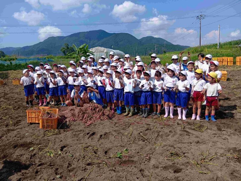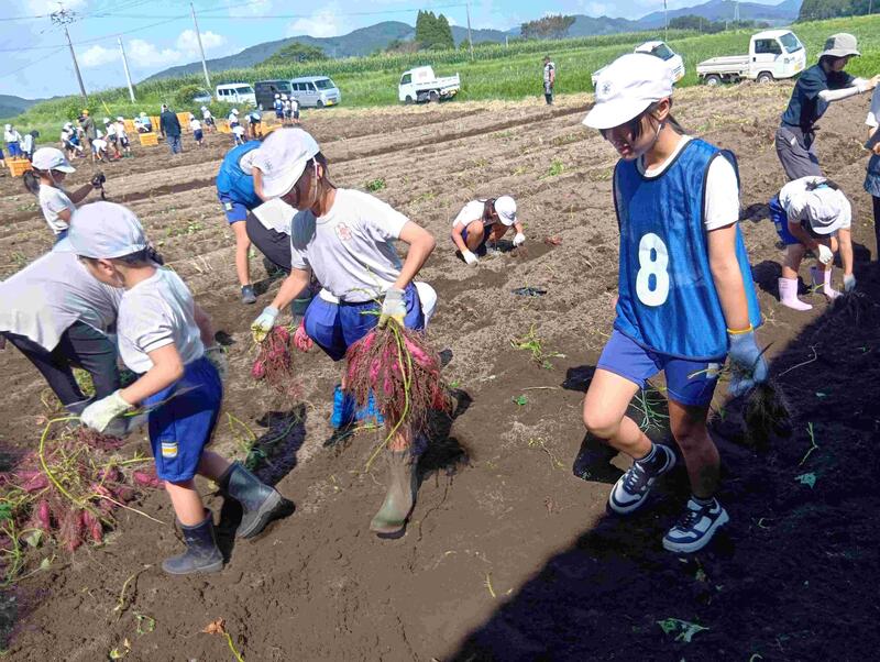 4月30日に苗を植え付けて約4か月。無事に収穫を迎えることができました。たくさんの甘藷を笑顔で運び、児童にとってとてもいい経験になりました。甘藷が無事収穫できたことに感謝の気持ちをもち、大切に食べてほしいです。これからも大束地区の名産に誇りをもち、地域や保護者の皆様に感謝の気持ちをもって学校生活をがんばってくれることを期待します。