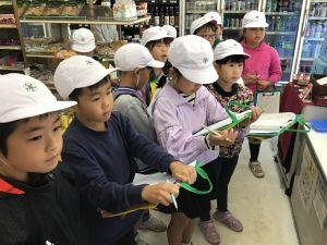 学校のすぐそばにある、スーパーやガソリンスタンドを見学しました。