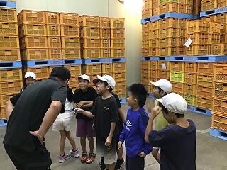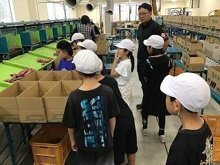 たくさんの機械があって、かんしょが自動で分けられたり、箱詰めされたものがベルトコンベアで流れていくのを見て、児童は興味をもって見学していました。