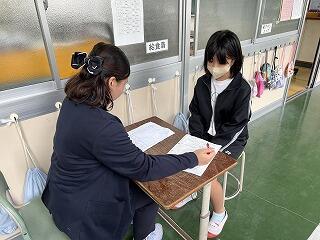 5・6年生では、先生と一対一で「パフォーマンステスト」を行いました。