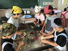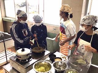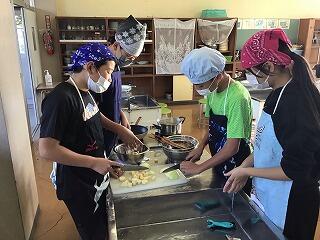 大量の甘藷をゆでて、つぶして、形を整えて…グループで協力して楽しく作ることができました。もちろん、味は最高!あっという間に平らげました。