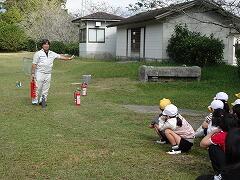 代表児童と先生が実際に消火器を使っての消火訓練を行い、命を守る方法をまた一つ学ぶことができました。