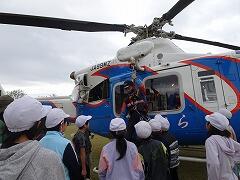 災害時や緊急時に、少しでも早く人の命を救うために、「あおぞら」にはさまざまな装備があることや、救助隊の方々も厳しい訓練を重ねていることに、児童は興味をもった様子でした。最後には、全員が初めてヘリコプターに乗り込むという、貴重な経験をさせていただきました。