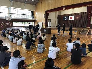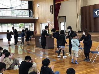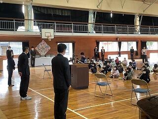 始業式後には、先日行われたくしま学カルタ大会の表彰式も行いました。