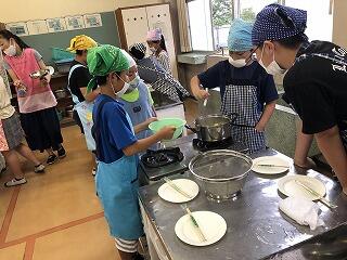 5年生が家庭科の調理実習で