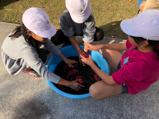 3年生が理科の学習で「日なたと日かげ」の勉強をしていました。