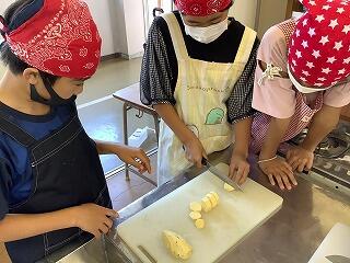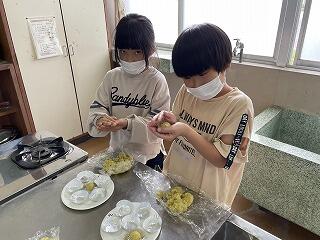 低学年と中学年で日にちを分けて実施しました。皮をむいたり切ったりする経験や、つぶしたかんしょをこねる経験など、初めて経験する児童もいた様子でしたが、楽しんで調理をしました。