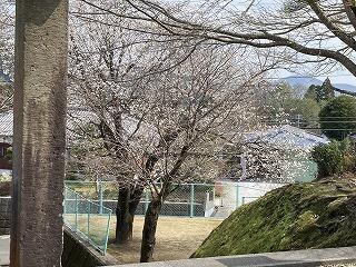 正門前階段横にある山桜の木が