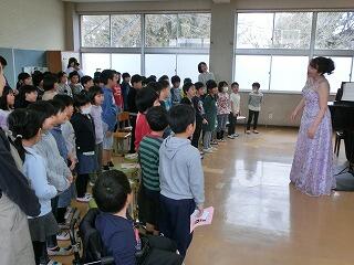 4校時に下学年が声楽家のコンサートを