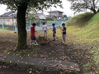 始まりの放送を合図に、全校児童が一斉に取り組みました。