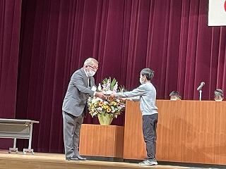 始業式後には、先日行われたくしま学カルタ大会の表彰式も行いました。