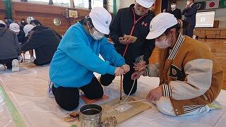 2月14日(火)午前中、福島小学校体育館で行われた火育活動に、大束小学校6年生が参加しました。
