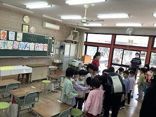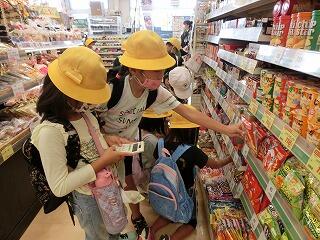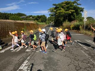 1・2年生は学校周りの町探検、お買い物体験を含めて大束の町を散策しました。