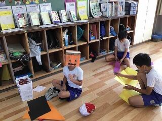 教室に帰って、スケッチをしたり、愉快なお面を作ったり…少し遅い秋の訪れを楽しんだ子どもたちです。