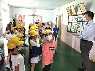 1・2年生は大束の町探検をしました。学校を出発して、大束駐在所、郵便局、JA大束の見学をさせていただきました。また、Aコープで300円分のおやつのお買い物をしました。電卓を使って2年生が計算してくれて上手にお買い物ができました。お昼ごはんは大束支所で食べさせていただき、公園で元気いっぱい遊びました。お天気もよく、外で食べるお弁当はとってもおいしかったようです。自分で買ったおやつもたくさん食べて、にこにこ笑顔の1・2年生でした。大束の町には素敵なところをたくさん発見できました。