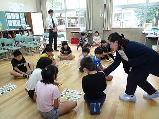 ALTの先生が来校された日の3・4年生の様子です。英語の音楽に合わせてダンスをしたり、フルーツゲームをしたりするなど、楽しく活動することができました。最後には自分の好きなフルーツを英語で言えるようになり、うれしそうな3・4年生児童でした。Good Job!