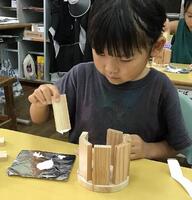 全校児童で取り組んだ木育でランプシェードを作りました。