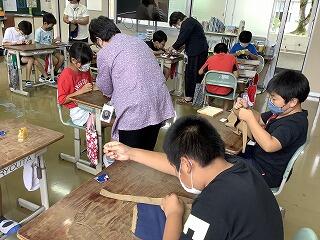 5年生は洋裁技能士の方からポーチづくりを指導していただきました。