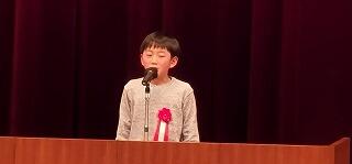 環境問題について考え、地球温暖化を遅らせるために家族で実践していることについて発表しました。家族で同じ部屋で過ごすことで、余計な部屋の電気を使わずに済み、家族団らんの時間も増えるので一石二鳥だと述べていました。堂々と意見を述べ、大変素晴らしい発表となりました。