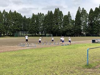 ハードル走は、できるだけ前傾姿勢を保ちながら