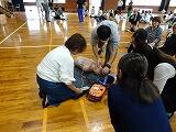 消防署の方を講師にお招きし、胸骨圧迫のしかたやAEDの使用方法等を、実演しながら学びました。