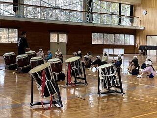 地域の伝統的な芸能でもある「くるみ太鼓」の練習が始まりました。