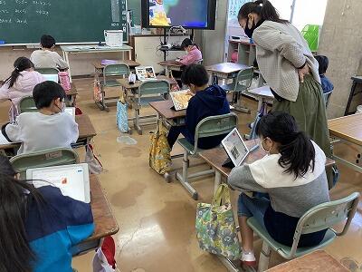 3年生がタブレットを使って