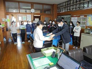 代表に決まっていた6年生には、校内放送を使って発表してもらいました。