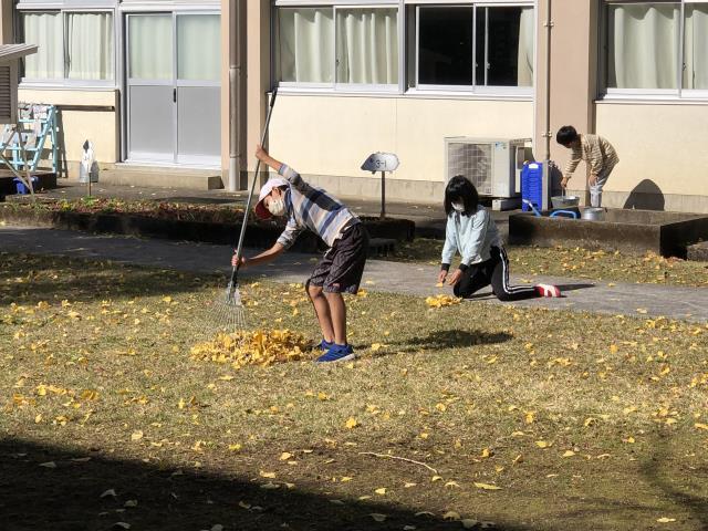 3・4年生のボランティア隊は、昼休みにもかかわらず、落ち葉を集めて中庭をきれいにしてくれました。
