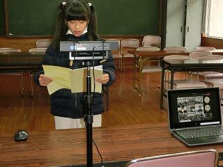 環境問題について考え、地球温暖化を遅らせるために家族で実践していることについて発表しました。家族で同じ部屋で過ごすことで、余計な部屋の電気を使わずに済み、家族団らんの時間も増えるので一石二鳥だと述べていました。堂々と意見を述べ、大変素晴らしい発表となりました。