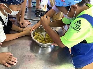低学年と中学年で日にちを分けて実施しました。皮をむいたり切ったりする経験や、つぶしたかんしょをこねる経験など、初めて経験する児童もいた様子でしたが、楽しんで調理をしました。