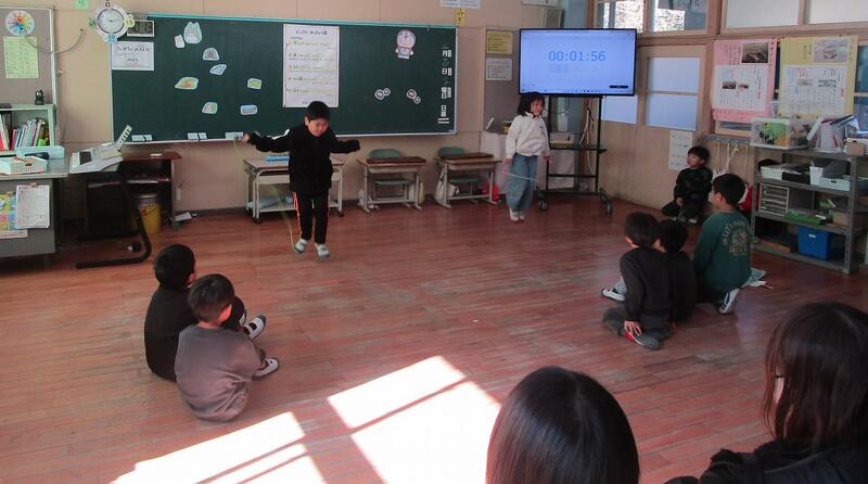 1月後半から2月中旬にかけては、なわとび月間となっています。短なわとびでは個人の記録、長なわとびでは学級のでの8の字飛びの記録に挑戦します。今日は全校でなわとびの練習を行い、それぞれ目標とする記録に挑戦していました。2月14日になわとび大会が開催されます。いい記録が出るように練習をがんばってほしいです。