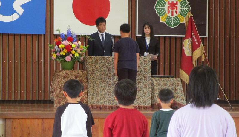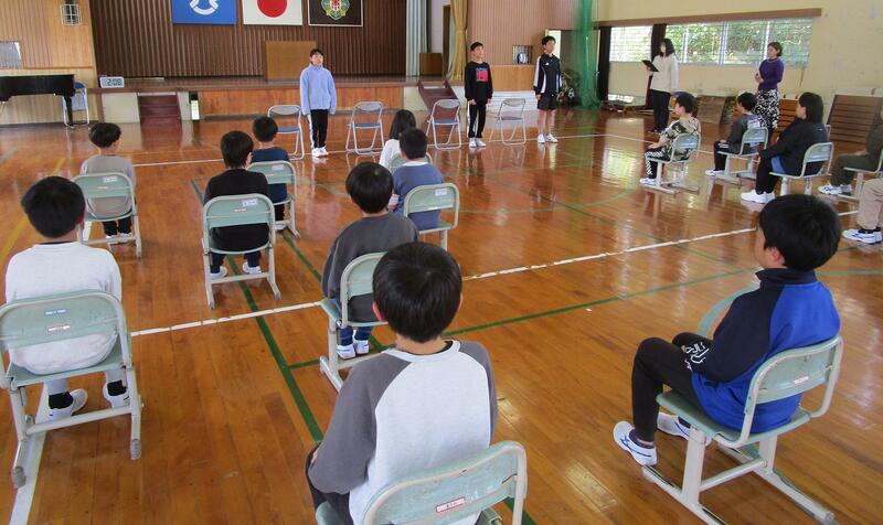 今日は、本年度最後の全校集会でした。1年間の行事の振り返りをした後、毎朝、交通立番指導をして、登校班に随行してくださる民生委員の吉田日出子さんをお招きし、お礼の手紙を渡しました。もう一人の市交通安全協会の今江猛さんは、仕事の都合で来られませんでした。今江さんと吉田さんは、登校時の見守りを十年以上されており、子どもたちの安全のために尽力されている方々です。本当にありがたいです。これからもよろしくお願いいたします。